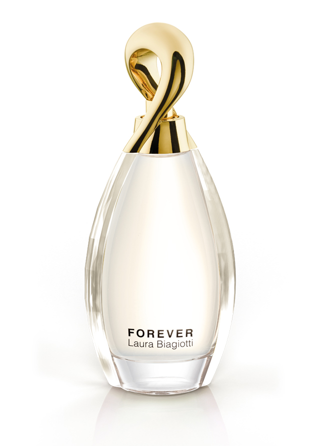 Riproduce in verticale il simbolo dell’infinito che ha la forma di un otto disteso. Inventato nel 1655 dal matematico John Wallis, viene anche detto “lemniscata” che in latino significa nastro. Il flacone di Forever Gold For Her di Laura Biagiotti è infatti costruito dalle preziose volute di un nastro metallico che in alto forma l’intero tappo e sotto abbraccia l’ampolla di vetro. Da qui traspare il colore dorato del jus. Si crea così una perfetta armonia cromatica con la struttura metallica lasciata volutamente aperta all’altezza della base di appoggio. Del resto, il più importante matematico del ‘700, Leonardo Eulero, per indicare il concetto d’infinito assoluto utilizzava una variante aperta del simbolo originale. Niente di meglio, quindi per il flacone del profumo che celebra l’amore delle donne: infinito e senza limiti per definizione. Il nome Forever e il brand Laura Biagiotti sono scritti con una tonalità brunita dell’oro sul fondo dell’ampolla.