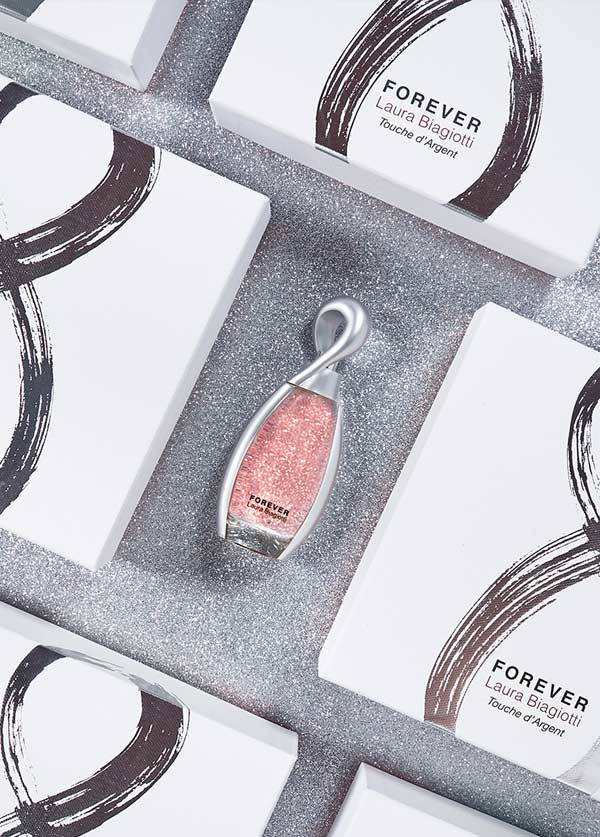 L’argento simboleggia la donna, la luna, l’acqua e la fertilità. Ha il potere di trattenere le energie positive: è una sorta di specchio magico che riflette e amplifica l’eterno presente. Per questo il nuovo profumo femminile di Laura Biagiotti è Forever Touche d’Argent, flanker di Forever, una fragranza modulata sulla straordinaria capacità delle donne di dare ad ogni tipo d’amore il senso dell’infinito. Forever Touche d’Argent rivela il lato più misterioso della femminilità, quell’aura intrigante che ogni donna coltiva segretamente in sé. Jordi Fernandez, maestro profumiere di Givaudan, ha costruito una potente partitura olfattiva che racconta in modo nuovo l’infinita complessità dell’anima femminile.