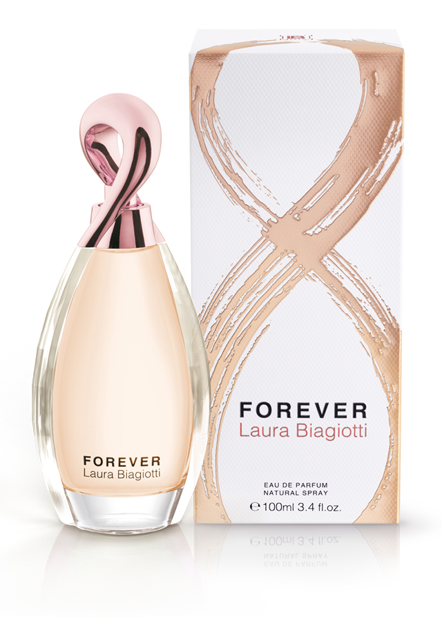 Riproduce in verticale il simbolo dell’infinito che ha la forma di un otto disteso. Inventato nel 1655 dal matematico John Wallis, viene anche detto “lemniscata” che in latino significa nastro. Il flacone di Forever Laura Biagiotti è infatti costruito dalle preziose volute di un nastro metallico che in alto forma l’intero tappo e sotto abbraccia il flacone di cristallo. Da qui traspare il colore rosa della fragranza.